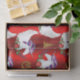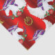 Ein wunderschönes Weihnachtswaschpapier mit prächtigen weißen Einhörnchen mit lila Manen und großen, weißen Flügeln. Sie haben goldene Hörner und rote Poinsettia und Weihnachten heilig unter ihnen. Um sie herum gibt es goldene Weihnachtskränze und Weihnachtsbäume. Alle sehen sehr festlich auf einem schönen, lebhaften roten Hintergrund aus.