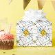 Schwarze lineare Winkel und Kreise in den Primärfarben Rot, Gelb und Blau bilden das zeitgenössische Retro-Muster, das diese Geschenkpackung schmückt und an das moderne Design des Mitteljahrhunderts und das Atomzeitalter der 1950er und 1960er Jahre erinnert.