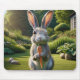 Ein niedliches Weinkaninchen sitzt in einem üppigen Garten und hält glücklicherweise eine Karotte.