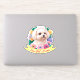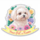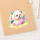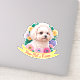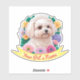 Winsome Bichon Frisé, gelb, rosa und lila Blume Aufkleber