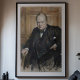 Capture the commanding presence of Sir Winston Churchill with this evocative pastel-style portrait. Standing resolute against a wood-paneled backdrop, the legendary Prime Minister is depicted in his signature dark suit and bow tie, with a steady hand resting on his hip. The artwork uses bold, expressive strokes to highlight his steely gaze and determination, embodying the strength of British leadership during World War II. A powerful tribute to history, perfect for an office, library, or study.