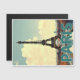 Magnetische Postkarte, die den Eiffelturm in Vintage und Fiktion darstellt, vom Hügel von Chaillot im Herbst