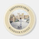 Basierend auf meinem Acrylgemälde von Winter in Windsor Castle, England. Eine herrliche Winterlandschaft von Windsor Castle, als der Schnee den Garten und die Bäume um ihn herum bedeckte. Das Design hat einen beigefarbenen Kreisrahmen auf der Außenseite und Texte, die oben und unten personalisiert werden können.