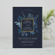 Unsere Winter Azure Hochzeitseinladung umrahmt Ihre Namen mit einem eleganten quadratischen Rahmen von winterfarbenem Blattwerk mit goldenen Folienakzenten. Ein modernes und elegantes Ambiente im botanischen Trend für Winterhochzeiten. Colorway: Winter Azure, ein Medley gefrorener Blues auf einem marinen Hintergrund.