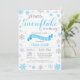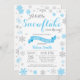 Winter Baby Shower Einladung. Blaue Schneeflocke. Einladung zur Kinderdusche. Winter Holiday Baby Dusche einladen. Junge und graue Silberschneeflocken. Weißer Hintergrund. Für weitere Anpassungen klicken Sie bitte auf die Schaltfläche "Anpassen" und verwenden Sie unser Designwerkzeug, um diese Vorlage zu ändern.