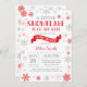 Winter Baby Dusche Einladung. Roter Schneeflocken. Einladung zur Kinderdusche. Winter Holiday Baby Dusche einladen. Rote und graue Silberschneeflocken. Weißer Hintergrund