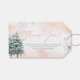 Winter Blush Baby Duschgeschenk und Gefallen Tags mit Kiefern und Schneeflocken.