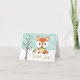 Ein süßer Babyfuchs trägt ein gelbes Windeln mit einem passenden Windeln-Button und behalte warm mit einem niedlichen und gemütlichen grünen, gestreiften Schal. Ein kleiner Mama-Vogelhops in der Nähe des Fuchses mit einem heiligen Ast zwischen ihrem Schnabel. Ein festlicher und saisonaler Hellbeerbaum, Schneeflocken und schneebedeckter Boden runden dieses Winter- und Urlaubsthema Fuchs Babydusche ab. Dieses Foxy-Design ist perfekt für einen Jungen oder eine geschlechtsneutrale Babydusche dank einer Notizkarte. Herzförmige Spuren sind im Schnee zu sehen. Kunstwerk © Chrissy H. Studios, LLC. Alle Rechte vorbehalten.