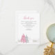 Vielen Dank Karte mit einer Snowy Landschaft mit rosa Pine Baum.
