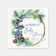 Winter baby shower monogrammed napkins, watercolor dusty blue winter berries on snowy pine branches snowflakes baby shower personalized napkins, winter baby shower party supplies, gender neutral winter baby shower personalized printed napkins