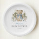 Make your winter baby shower extra memorable with these gorgeous holiday themed paper plates. Featuring an elegant watercolor bear surrounded by festive pine trees, pine cones, a wrapped gift, and a cozy lantern — all displayed on a clean modern white background. Personalize the text template easily for your own special event details. Perfect for winter wonderland baby showers, Christmas baby showers, and seasonal celebration themes. A beautiful way to elevate your table décor and add coordinated holiday charm to your party setup.