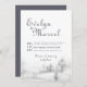 Diese Winterwaldvorder- und Rückenhochzeit lädt zu einer Hochzeit in Urlaubsort ein. Das Design besticht durch einen handbemalten Wald auf Hügeln und Bergen in einer idyllischen Winterlandschaft.