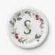 Dieses Set von 20 kleinen 1,5" runden Monogramm-Umschlag Aufklebern verfügt über einen hellroten und waldgrünen Winterberry-Kranz mit einem dekorativen Salbei-Grün-Monogramm-Initial.