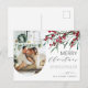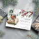 Gönnen Sie Ihren Freunden und Ihren Lieben ein frohes Weihnachtsfest in dieser Urlaubssaison mit dieser modernen, eleganten Postkarte mit Aquarell-Winterbeeren, botanischen Blattstielen, einem Foto Ihrer Familie und einem Feiertagsgruß, den Sie persönlich machen können.