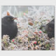 Design zeigt ein Bild eines Vogels in einer eisigen Landschaft.