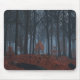 Ein Baumstand an einem bewölkten Wintertag. Die hohen Bäume sind kahl und blätterlos, aber die darunter liegenden Splint haben noch ihre braunen Blätter. Die in fast rosa Farbtönen gehaltenen und gefallenen Blätter bilden einen Kontrast zu den dunklen Stämmen und dem nebelblauen Dunst oben. Dieses Hängen von toten Blätter durch den Winter wird "Marcescence" genannt, und es ist besonders verbreitet in jungen Eichen wie diesen.