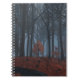 Ein Baumstand an einem bewölkten Wintertag. Die hohen Bäume sind kahl und blätterlos, aber die darunter liegenden Splint haben noch ihre braunen Blätter. Die in fast rosa Farbtönen gehaltenen und gefallenen Blätter bilden einen Kontrast zu den dunklen Stämmen und dem nebelblauen Dunst oben. Dieses Hängen von toten Blätter durch den Winter wird "Marcescence" genannt, und es ist besonders verbreitet in jungen Eichen wie diesen.