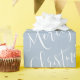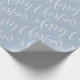 Weihnachtsgeschenkpapier bietet moderne Kalligrafie fröhliche Weihnachtsschrift in winterblau und weiß. Passen Sie die Hintergrundfarbe Ihrer Wahl an.