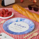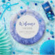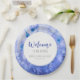 Hochzeitswillkommen Teller mit Winterblauen Blume Garten, Blumenlandschaft. Hellblaue Indigolandschaft mit abstrakten Blume. Silhouetten von Blume auf gepunktetem Hintergrund. Aquarellmalerei mit Blumenhintergrund Hochzeitsempfang Begrüßungspapier Teller. Winter Blue Garden Collection
