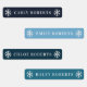 Winterschneeflocken Kids Wasserfeste Namensschilder mit Schneeflocken-Silhouetten an jedem Ende. Personalisierte Namensaufkleber in Blau und Weiß.