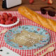 Happy Holidays in schicken weißen Schriftzeichen auf einem Spritzer von Imitaten Goldfolie auf Poinsettias und Winter-Blume auf blauem Hintergrund, diese Papier-Teller sind auch mit Ihrem Namen personalisiert. Ideal für Ihre Zuhause oder Geschenke als Geschenke. PASSENDE Servietten und weitere Designs in unserem Geschäft.