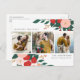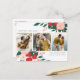 Wünschen Sie Ihrer Familie und Freunden einen schönen Urlaub mit unserem festlichen Winter Botanicals Foto Postkarte. Die Ferienpostkarte zeigt 3 Ihrer Fotos auf der Vorderseite, gerahmt in Weiß mit roten und rosa bemalten Blume mit grünen Blätter und goldenen Akzenten. Personalisieren Sie die Front, indem Sie einen benutzerdefinierten Gruß, Ihren Namen und das laufende Jahr. Die Rückseite bietet Platz für Ihre Rücksendeadresse und benutzerdefinierte Nachrichten.