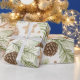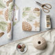 A seamless pattern wrapping paper showcasing winter botanicals, including pinecones, evergreen branches, acorn, and stylized snowflakes in gold and brown tones. The light, textured paper background adds a natural, rustic warmth that evokes the coziness of the winter season. Ideal for nature lovers, holiday decorators, and anyone who enjoys the serene beauty of winter botanicals and rustic Christmas charm.