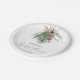 Minimalistische rustikale Teller aus dem winterlichen Bukett mit Kiefernfadenfischen und Weihnachtsbeeren.