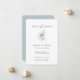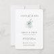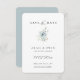 Modernes Aquarellwinterbotanisches Bouquet, Save the Date Card. Elegantes und einfaches Typografie-Design. Die Backfarbe, die in frostigem staubblauem Blau angezeigt wird, kann individuell angepasst werden.