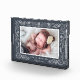 Zeigen Sie ein süßes Foto Ihres kleinen Mädchens in diesem freistehenden Acryl-Foto-Block. Das Design besticht durch ein horizontal/landschaftsorientiertes Foto, umgeben von zarten Blätter und Ästen in elegantem, elegantem Blau-Weiß und Weiß Mitternacht. Personalisieren Sie das Baby mit dem Namen und Geburtsdatum am unteren Ende.