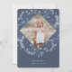 Die elegante Hanukkah-Fotokarte zeichnet sich durch ein beliebtes Foto aus, umgeben von einem geometrischen Rahmen mit zartem blauen botanischen Blattwerk und kleinen Aquarellblüten auf einem schieferblauen Hintergrund. Ihr persönlicher Urlaubsgruß und Familienname oder Familiennamen erscheinen am Ende in schicken weißen Schriftzeichen.