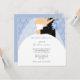 Winter-Brautpartyeinladungen, mit einer Illustration einer Braut und des Bräutigams auf einem blauen Schneeflockehintergrund. Erhalten Sie die zusammenpassenden Porto-, Bevorzugungsaufkleber- und Verschickenaufkleber. Treten Sie mit uns in Verbindung, damit kundenspezifische Farben Ihre Hochzeitsfarben - PMCustomWeddings@hotmail.com zusammenbringen