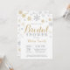 Winter Bridal Dusche Einladung. Gold und Gray Silver Snowflake. Weihnachts Brautparty einladen. Weißer Hintergrund. Für weitere Anpassungen klicken Sie bitte auf die Schaltfläche "Anpassen" und verwenden Sie unser Designwerkzeug, um diese Vorlage zu ändern.