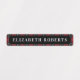 Weihnachts Buffalo Kariert Kids Waterproof Name Labels mit Herz-Silhouetten an jedem Ende. Personalisiert Name Label Aufkleber in rot, schwarz und weiß.