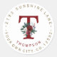 Winter Burgundy Floral Monogram Address Label Runder Aufkleber