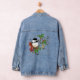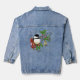 Niedliches Chickadee, das im Winter auf einem Baumarm sitzt und Schneeflocken herumfallen. Weihnachtsschmuck hängt von dem Baumzweig ab, auf dem die Kiche sitzt.