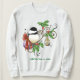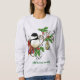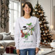 In dieser Winterdarstellung sitzt ein Kiche auf einem schneebedeckten Baumzweig. Heilige Weihnachtslieder und der kleine Vogel sind umgeben von zwei Urlaubsornamenten - einem runden und einem teardrop-förmig - die beide mit festlichen Mustern und kräftigen saisonalen Farben geschmückt sind. Schneeflocken und Schnee fallen in einer Umgebung von hellblau.