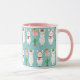 Dieses Design zeigt sich als Muster von Weihnachtslamas mit Weihnachtsbeleuchtung, Geschenken und Kakteen Pflanze und Schneeflocken im Hintergrund.