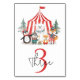 Featuring a charming red-and-white circus tent, a sweet polar bear ringmaster, penguins, foxes, and festive winter trees, this watercolor illustration brings cozy circus fun to your party setup.