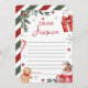 A festive winter-themed “Dear…” card featuring pine greenery, candy canes, snowflakes, a red holiday gift, a gingerbread cookie, and a cocoa mug illustration. Designed with lined space for personal messages, it’s perfect for winter or Christmas birthday parties, kids’ celebrations, and sweet seasonal notes. Ideal for pairing with gifts, favors, or memory keepsakes.