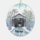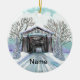 Winter Covered Bridge-Ornament, T - Shirt und Geschenke von ArtMuvz Illustration. Personalisieren amish Pferd und Buggy, Covered Bridge T - Shirt, Geschenke, Bekleidung.