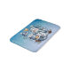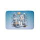 Charming winter illustration with a smiling snowman, striped scarf, blue mug of cocoa, boots and pine accents. Soft blue palette, warm accents, and cozy season feel!