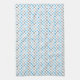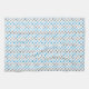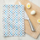 Weißes Küchentuch mit gepunktetem Muster in Blau- und Grautönen. Dieses tolle Handtuch für die Wintersaison, mit winzigen Schneeflocken, Wirbel, Sternen und Ringen.