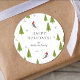Dieser Ferienaufkleber zeichnet sich durch ein modernes, einfaches Muster von Abfahrtsfahrern in einer Winterlandschaft mit grünen Kiefern und Schneeflocken aus. Personalisieren Sie es mit Ihrem Familiennamen oder einer speziellen Nachricht für einen geliebten Menschen.