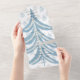 Winter Dusty Blue und Cream Weihnachtsbaum. Die perfekte Einladung für Ihre Winterhochzeit. Ein blasser Hintergrund von Bildern hebt die dunklere Blüte hervor.