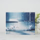 Vintages Gemälde einer Winterschneegeschichte mit Orora borealis, einem See und weißem Frettchen. Egrets repräsentiert Stärke, Reinheit, Geduld und langes Leben.