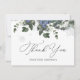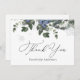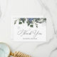 Vielen Dank Karte mit winterblauen Blüten, Schneeflocken und Evergreen. Personalisieren Sie Ihre Daten oder klicken Sie auf "Weitere Anpassungen vornehmen", um Schriftart Stile, Größe und Farben zu bearbeiten. Passen Sie den Text für ein Brautparty oder ein anderes Ereignis an.