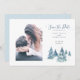 Dieses Foto Save the Date lädt zu einem Winterthema immergrünen Baumes mit blauen grünen Kiefern, die von Schnee bedeckt sind. Ideal für eine Weihnachtsfeier, eine Winterhochzeit oder eine Hochzeit in Urlaubsort in den Bergen, an Ihrem Lieblingsplatz im Wald. Vervollständigen Sie das Aussehen mit den vielen Optionen für Schreibwaren und Zubehör in diesem Thema. Basierend auf einer originalen Aquarellfarbe von © Lisa Audit Art, umgeben Sie sich mit herzerwärmender Kunst.