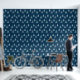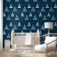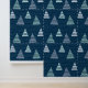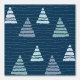 Serene und minimalistische Muster mit einem Fichtenwald unter Schnee mit subtilen gepunkteten Linien auf dunkelblauem Hintergrund. Ein sich wiederholendes Motiv schneebedeckter Kiefernbäume schafft eine ruhige Waldlandschaft über die Oberfläche. Die Einfachheit der Silhouetten trägt zur beruhigenden Ästhetik bei. Zwischen den Bäumen verstreuten zarte gepunktete Linien. Die Farbpalette wird gedämpft behalten und betont natürliche Farbtöne. Dieses schlichte und dennoch elegante Muster bringt ein Gefühl von Ruhe und inspirierter Schönheit in jeden Rahmen.
