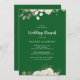 Dieses Winterblütenfest auf smaragdgrüner Hochzeitsbrunch lädt zum eleganten Weihnachtsbrunch ein. Das schlichte rustikale Design besticht durch weiße Blume mit Eukalyptus-Blätter und Wintergrün auf einem dunklen smaragdgrünen Hintergrund.